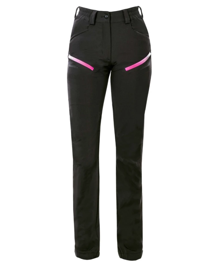 Pantalonii softshell pentru femei au o potrivire subțire SLIM FIT. Softshell-ul elastic ușor ElasticTech®Flexi cu membrană este, de asemenea, potrivit pentru activități solicitante, oferă o protecție excelentă împotriva vântului, este impermeabil, se usucă rapid și menține temperatura optimă a corpului. Fermoare de ventilație cu plasă pe partea exterioară a coapselor. Partea din spate este împărțită de șa, există 2 buzunare cu fermoar în față, circumferința taliei elastice, în formă crește confortul purtării. Modelarea funcțională a picioarelor, croială conică, tiv inferior al picioarelor cu posibilitatea de reglare a circumferinței cu capse, cârlig interior cu elastic pentru atașarea picioarelor la pantofi. Designul este completat de imprimări reflectorizante 3D.